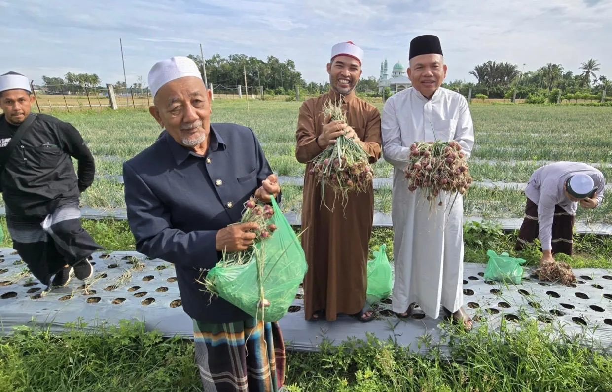 PORTALNUSA.com I PIDIE – Yayasan Pioner Nusantara Aceh bersama Majelis Permusyawaratan Ulama (MPU) serta ratusan Jamaah Safari Subuh (JSS) Masjid Agung Al-Falah melakukan panen bawang merah di lahan seluas 10 hektare di Gampong Tuha, Kemukiman Suwiek, Kecamatan Indra Jaya, Pidie, Minggu, 5 Oktober 2025.