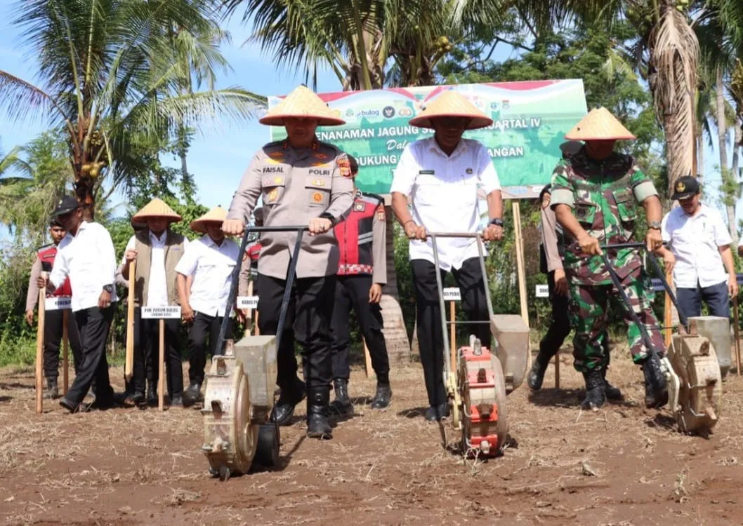 PORTALNUSA.COM I PIDIE JAYA – Mendukung Program Swasembada Pangan Nasional 2025, Forkopimda Pidie Jaya melakukan penanaman jagung serentak kwartal IV pada lahan seluas 2 hektare di perbukitan Gampong Mbeu, Kecamatan Trienggadeng, Rabu, 8 Oktober 2025.
