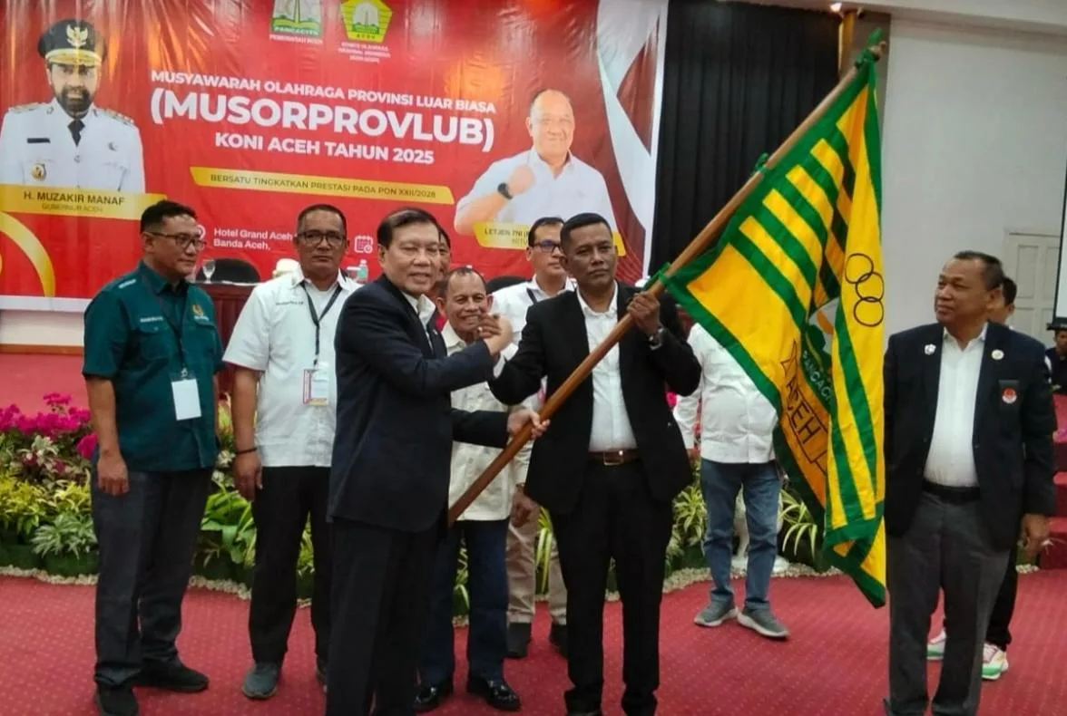 Pon Yaya terpilih secara aklamasi dalam Musyawarah Olahraga Provinsi Luar Biasa (Musorprovlub) KONI Aceh 2025 di Hotel Grand Aceh Syariah, Banda Aceh, Kamis, 9 Oktober 2025.