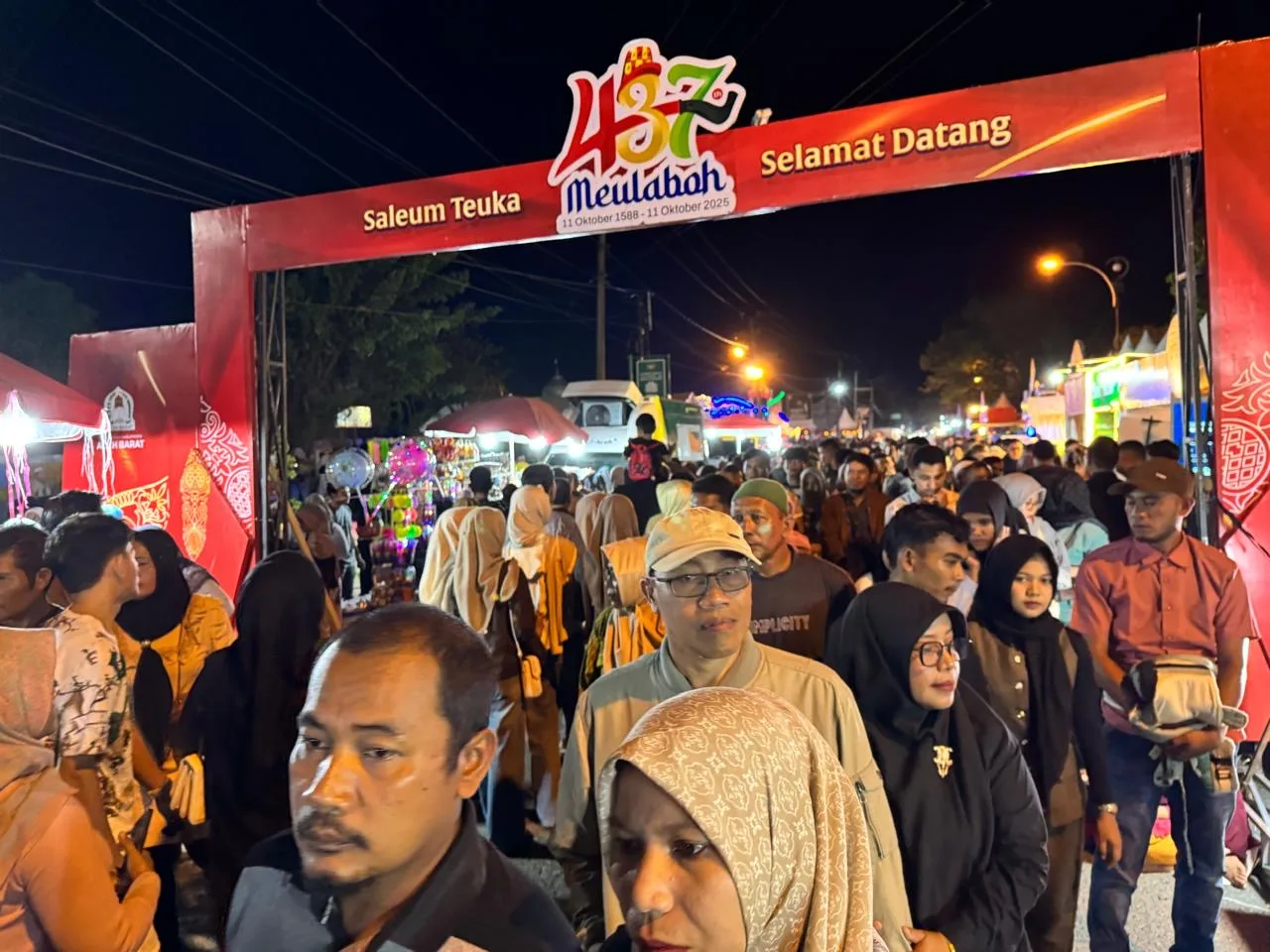 PORTALNUSA.com | MEULABOH – Meulaboh sebagai ibu kota Kabupaten Aceh Barat berubah layaknya lautan manusia pada malam pembukaan Perayaan Hari Ulang Tahun (HUT) ke-437 Kota Meulaboh dan Pekan Kebudayaan Aceh Barat (PKAB), Sabtu malam, 11 Oktober 2025.