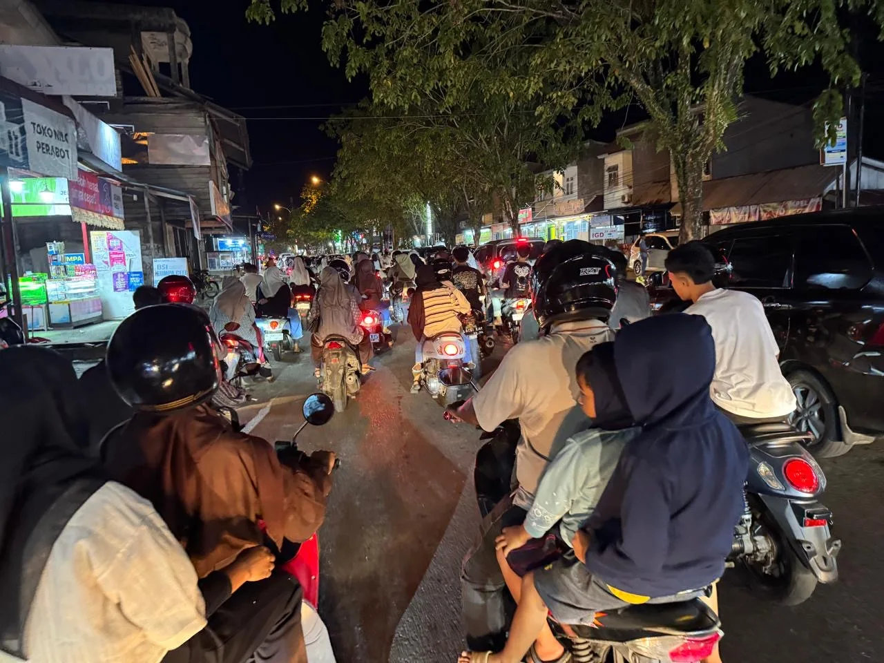 Ribuan kendaraan roda dua maupun roda empat yang terjebak macet terpaksa memarkirkan kendaraan mereka pada jarak yang hampir mencapai satu kilometer dengan titik kegiatan, seperti di Desa Panggong, Pasar Aceh, dan Kampung Belakang.