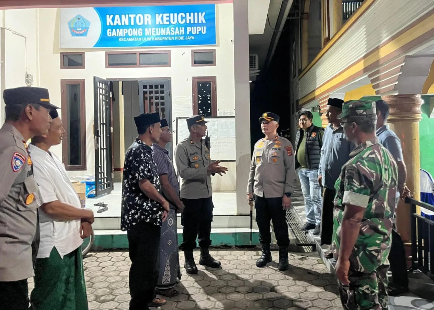 Kapolres Pidie Jaya, AKBP Ahmad Faisal Pasaribu, SIK, MH bersama aparat keamanan dari TNI/Polri melakukan pengamanan Pilchiksung di Gampong Pupu, Kecamatan Ulim, Selasa, 14 Oktober 2025. (Foto Humas Polres Pijay untuk Portalnusa.com)