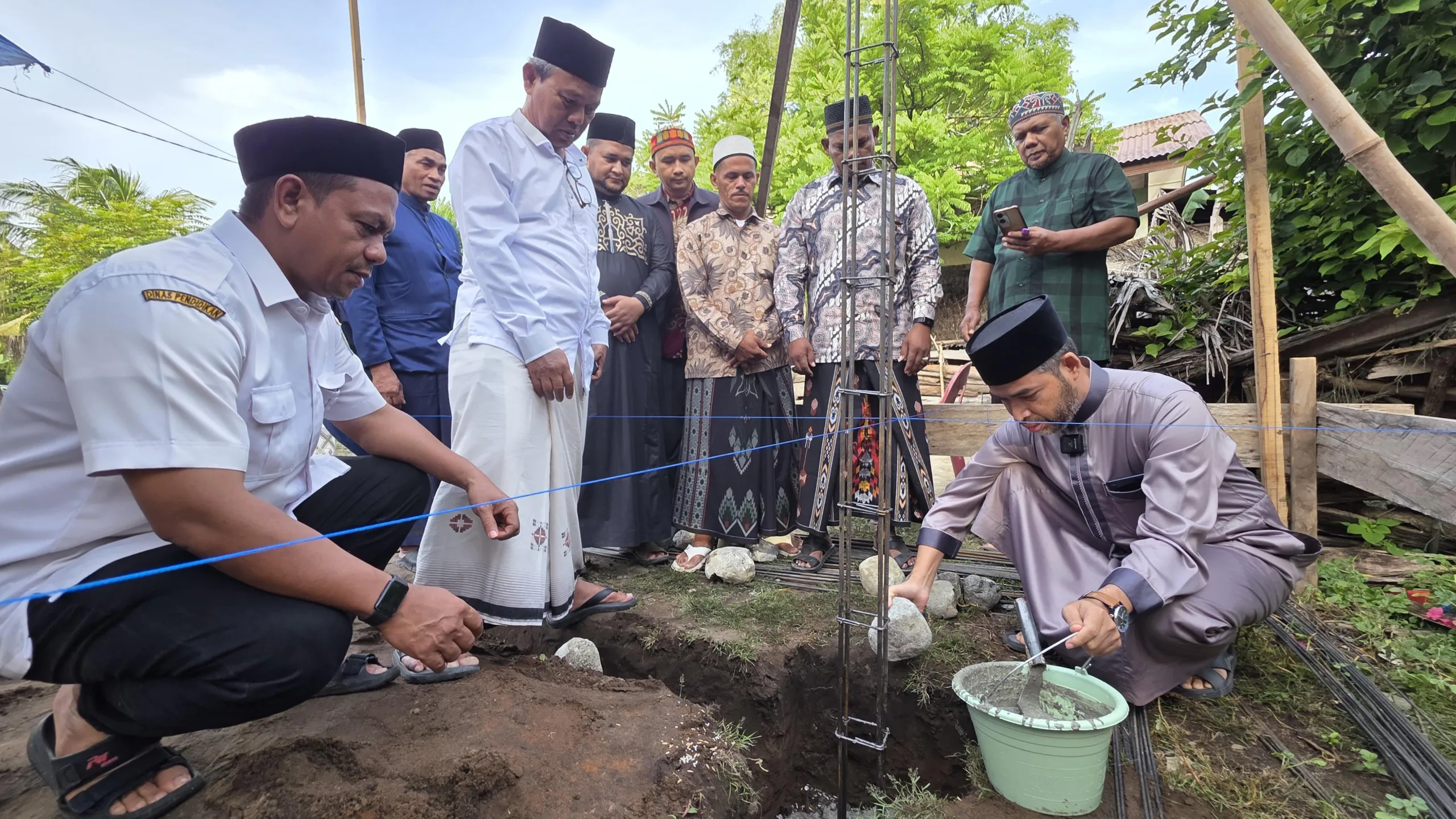 PORTALNUSA.com I PIDIE – Da’i Nasional asal Kabupaten Pidie yang juga pendiri Jamaah Safari Subuh (JSS) Masjid Agung Sigli, Dr. Tgk. Amri Fatmi Anzis, Lc, MA meletakkan batu pertama pembangunan rumah warga miskin di Gampong Sagoe, Kemukiman Cure Laweung, Kecamatan Muara Tiga, Pidie, Rabu, 29 Oktober 2025.