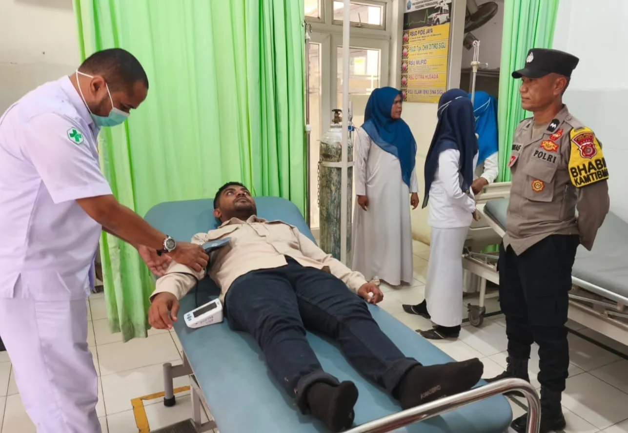 Ketua SPPG Gampong Sagoe, Kecamatan Trienggadeng, Pijay, Muhammad Reza menjalani perawatan medis, Kamis, 30 Oktober 2025 seusai menerima bogem mentah dari Wabup Hasan Basri. (Foto Idris Ismail/Portalnusa.com)