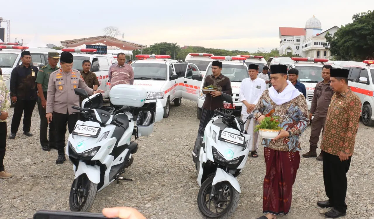 Semua unit ambulance tersebut dipeusijuek (tepung tawar) oleh Ketua Majelis Permusyawaratan Ulama (MPU) Pijay, Dr. H. Anwar Usman, M.Pd, di arena utama MTQ Cot Trieng, Meureudu, Kamis petang, 30 Oktober 2025.
