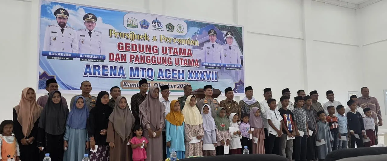 PORTALNUSA.com I PIDIE JAYA – Bupati Pidie Jaya, Sibral Malasyi bersama Forkopimda menyantuni 37 anak kurang mampu dan mem-peusijuek arena utama MTQ ke 37 Tingkat Provinsi Aceh, Kamis, 30 Oktober 2025.