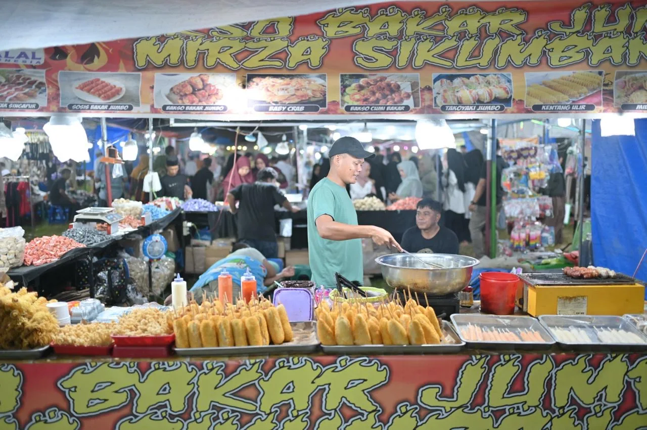 “Ada 94 pedagang yang menempati 73 stand bazar, 51 lapak pedagang kaki lima, 12 wahana permainan anak serta 16 unit pedagang kopi dengan menggunakan mobil,” sebut Sibral Malasyi.