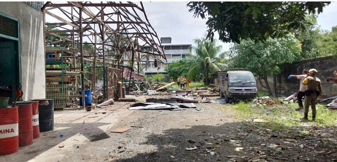 Gudang pengisian ulang tabung gas (oksigen) di Desa Gampa, Kecamatan Johan Pahlawan, Meulaboh yang memunculkan ledakan dahsyat merenggut setidaknya dua nyawa dan melukai beberapa lainnya, Rabu siang, 4 November 2025. (Foto Bithe.co)