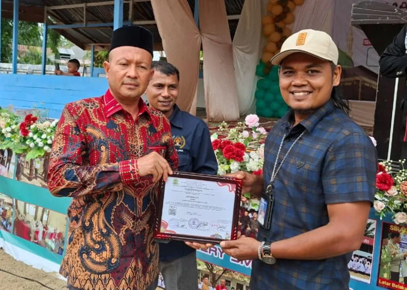Penghargaan bergengsi itu diserahkan langsung oleh Bupati Aceh Jaya, Safwandi, S.Sos., M.AP., Kamis 06 November 2025 di Kompleks Pesantren Darun Nizham, Kecamatan Teunom, Kabupaten Aceh Jaya.