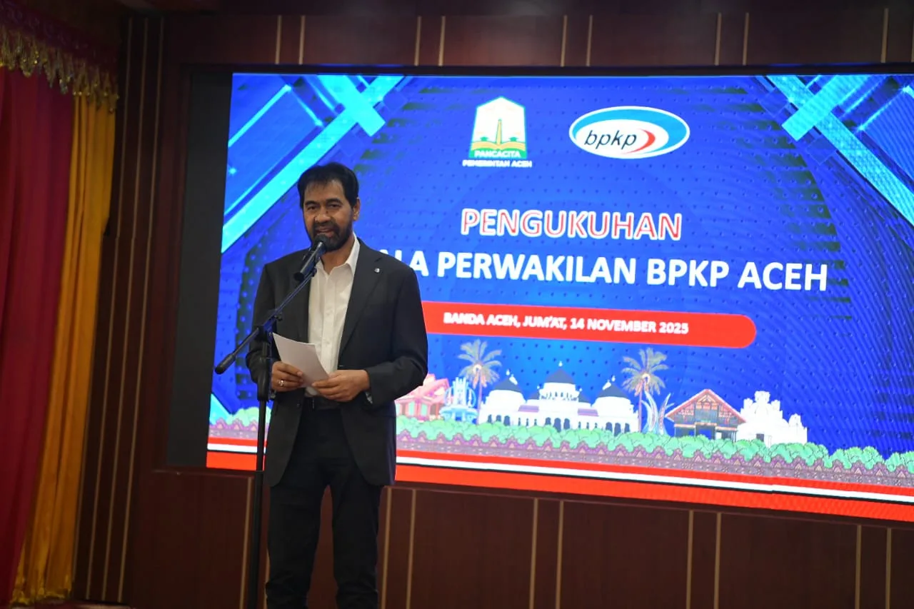 PORTALNUSA.com | BANDA ACEH –Gubernur Aceh, Muzakir Manaf mengukuhkan Nanang Agus Sutrisno sebagai kepala perwakilan Badan Pengawasan Keuangan dan Pembangunan (BPKP) Aceh di Banda Aceh, Jumat 14 November 2025.