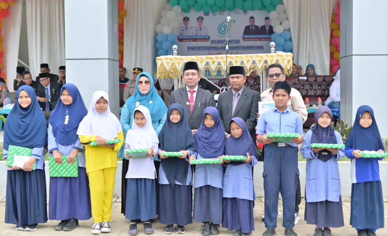 PORTALNUSA.com | PIDIE JAYA –Bupati Pidie Jaya, Sibral Malasyi menyerahkan santunan anak kurang mampu pada puncak peringatan Hari Kesehatan Nasional (HKN) ke-61 di Pidie Jaya, Kamis 13 November 2025.