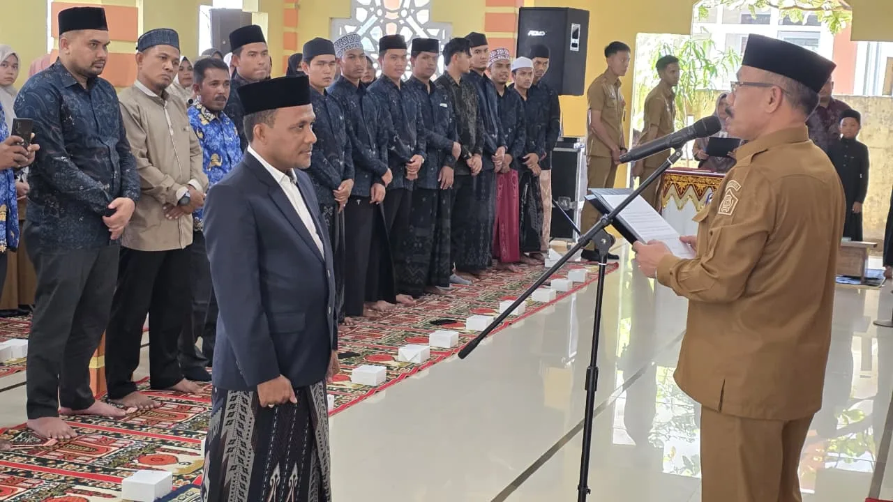 PORTALNUSA.com | PIDIE –Bupati Pidie, Sarjani Abdullah mengukuhkan ustaz Junaidi sebagai ketua Madrasah Ulumul Quran (MUQ) Pidie, periode 2025-2029, Senin, 17 November 2025.
