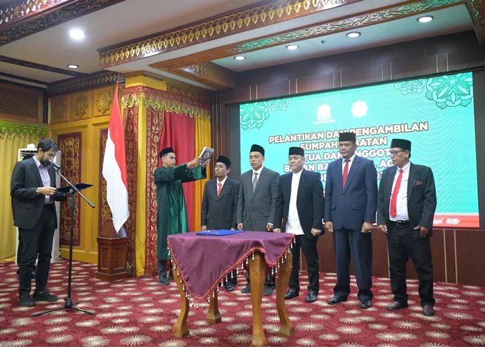 Pelantikan ketua dan anggota baitul mal Aceh periode 2025-2030 di Banda Aceh, Senin 17 November 2025 malam (Foto: Dok Humas pemerintah Aceh)
