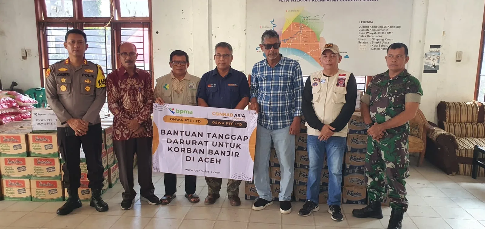 PORTALNUSA.com | BANDA ACEH – Conrad Asia Energy melalui dua anak perusahaannya yang beroperasi di Aceh, ONWA Pte Ltd dan OSWA Pte Ltd, menyalurkan 2.280 paket bantuan bagi masyarakat terdampak banjir dan longsor di tiga kabupaten: Aceh Barat, Nagan Raya, dan Aceh Singkil.