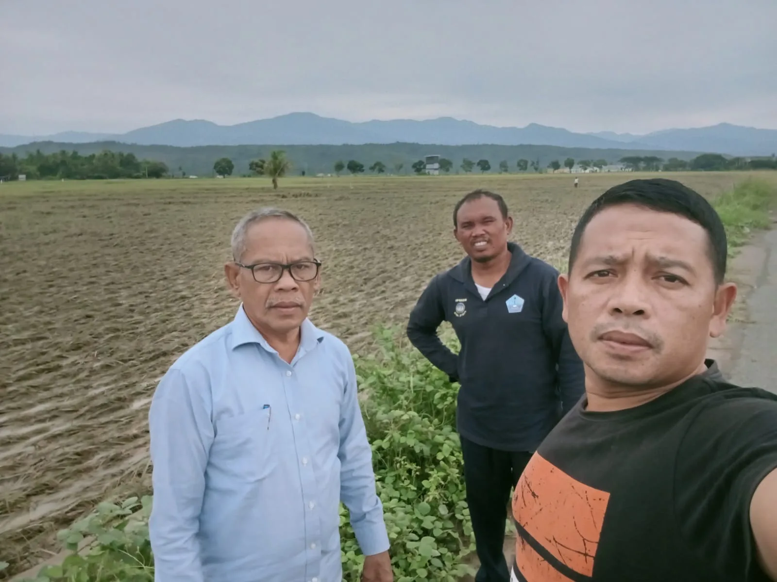 Sekretaris Distanpang Pijay, Rusydi SP (kiri) dan Kabid TPH, Syafri Salam, SP, MP (kanan) melakukan pendataan lahan produktif padi siap panen yang tertimbun sedimen banjir bandang, Jumat, 5 Desember 2025. (Dok Distanpang Pijay untuk Portalnusa.com)