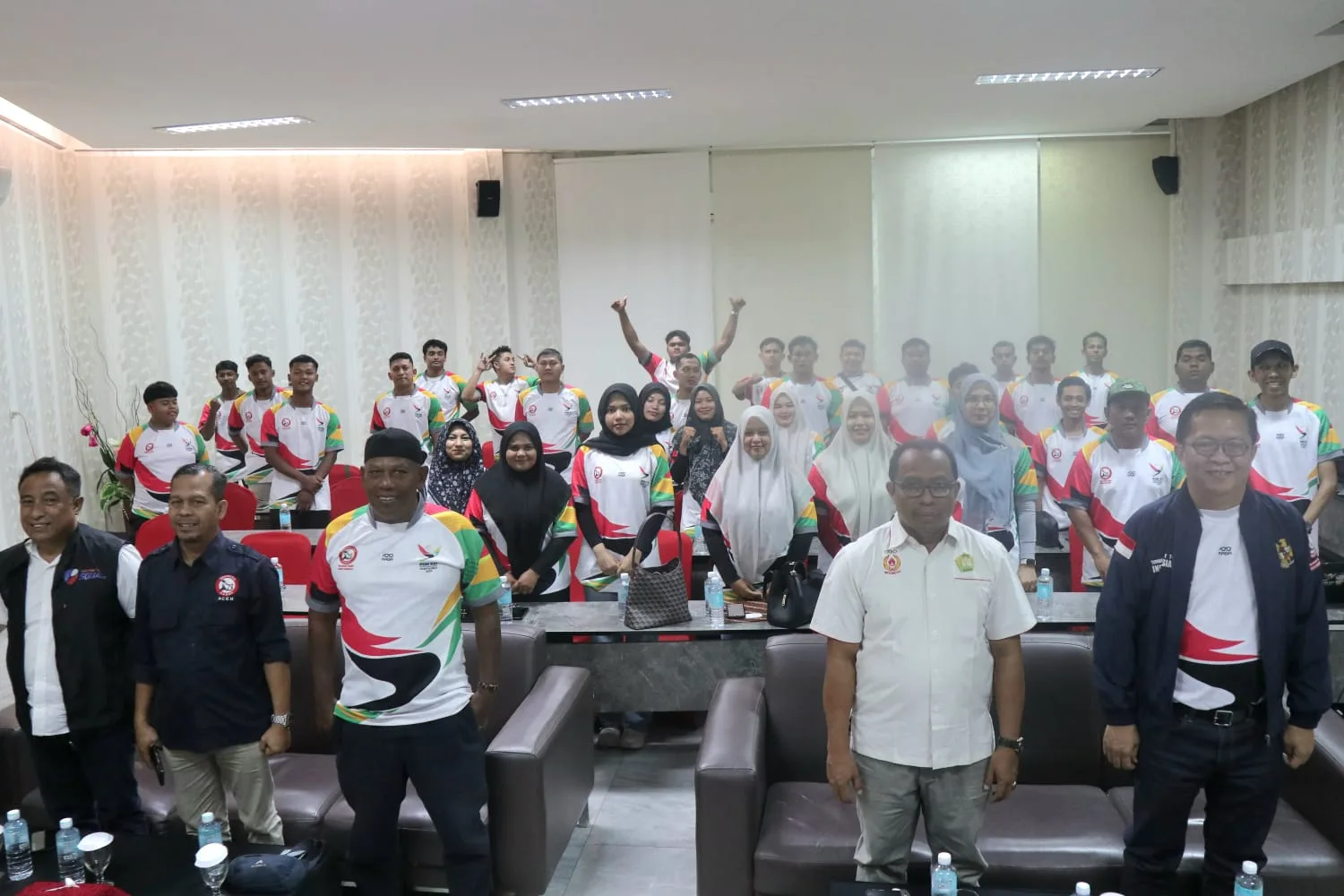 Sesi foto bareng pengurus, peserta, panitia, dan pengurus baru Rugby Aceh pada rangkaian Musorprov III di Banda Aceh, Sabtu, 6 Desember 2025. (Dok Rugby Aceh)