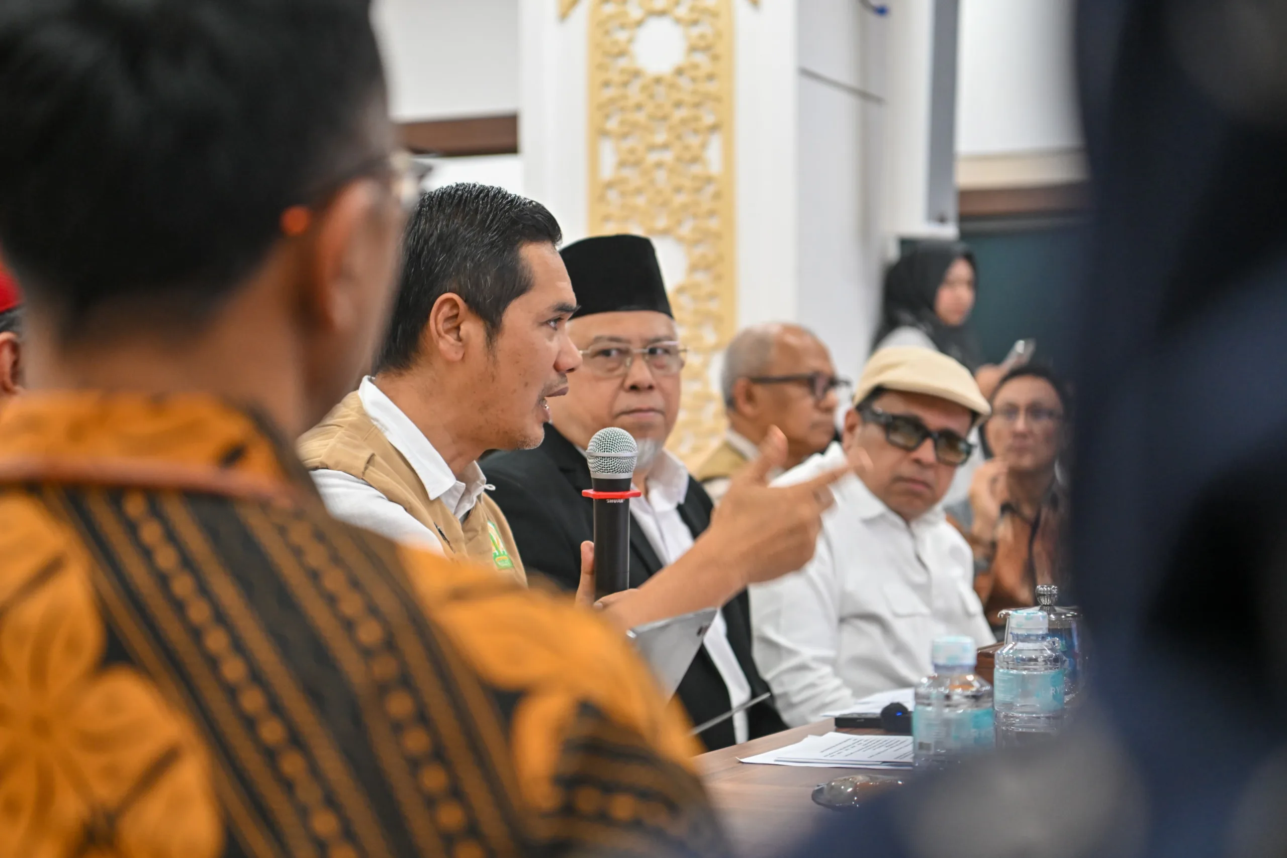 PORTALNUSA.com | BANDA ACEH — Komisi VIII DPR RI serta perwakilan Kementerian Sosial, BNPB, dan Kepala BPJPH, Haekal Hasan menggelar rapat darurat bencana dengan Sekda Aceh, M. Nasir di Kantor Gubernur Aceh, Rabu, 10 Desember 2025.