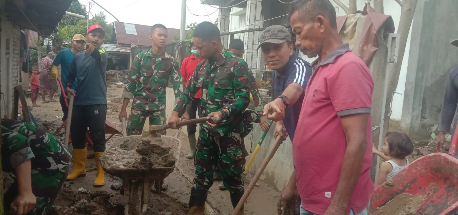 Selain bergotong royong membersihkan endapan lumpur yang cukup tebal di lingkungan bahkan dalam rumah juga dilakukan pengecekan potensi gangguan kesehatan masyarakat pascabencana.