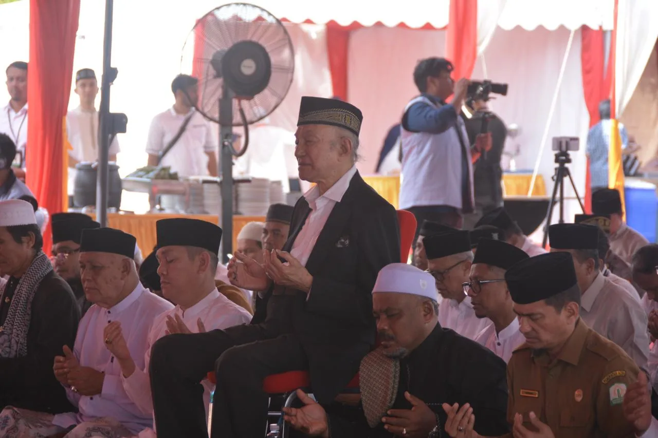 Wali Nanggroe Aceh, Paduka Yang Mulia Tgk Malik Mahmud Al-Haythar, memanjatkan doa memohon pertolongan Allah SWT untuk pemulihan Aceh pascabencana banjir dan tanah longsor dalam kegiatan ‘Aceh Berzikir: Solidaritas di Masa Bencana’ di halaman Lembaga Wali Nanggroe Aceh, Aceh Besar, Senin, 15 Desember 2025. (Dok Lembaga Wali Nanggroe Aceh)