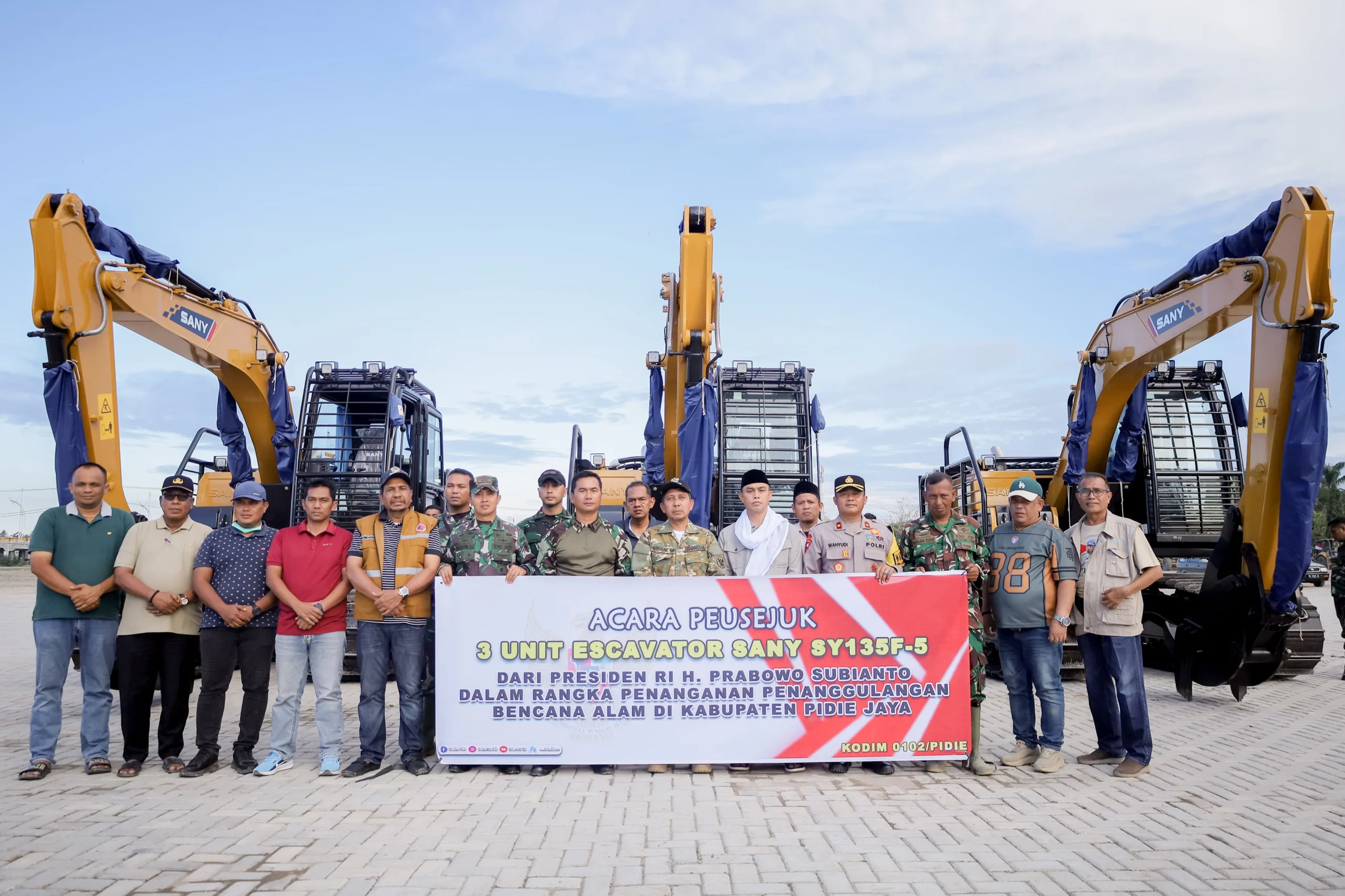 PORTALNUSA.com I PIDIE JAYA – Pemkab Pidie Jaya menerima tiga unit alat berat jenis excavator dari Presiden RI, Prabowo Subianto untuk pembersihan lumpur di sejumlah titik dalam wilayah tersebut.