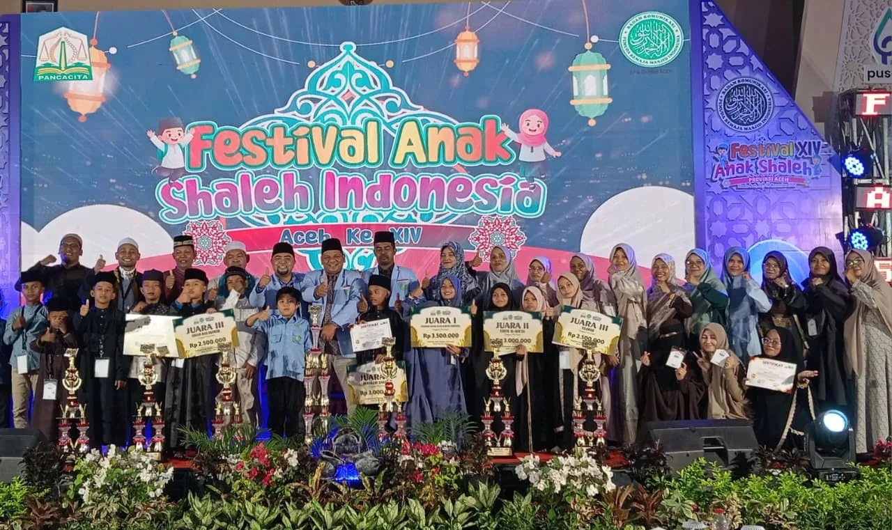 PORTALNUSA.com I PIDIE – Sekses meraih prestasi di lima cabang lomba akhirnya duta Pidie dinobatkan sebagai Juara Umum Festival Anak Shaleh Indonesia (FASI) ke-14 tingkat Provinsi Aceh yang berakhir Minggu malam, 21 Desember 2025 di Asrama Haji Aceh, Banda Aceh.