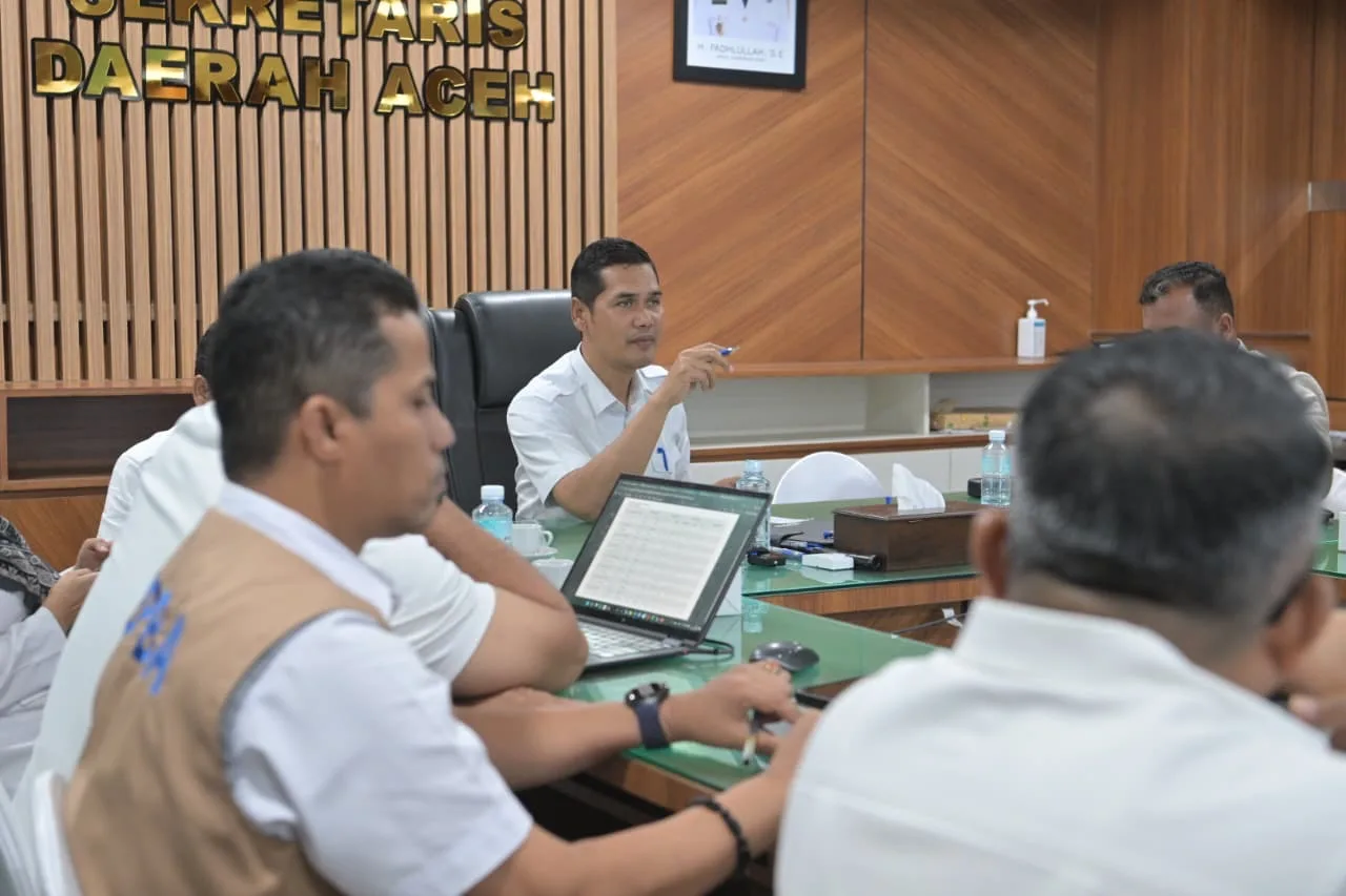 Sekda Aceh memimpin rapat penyusunan dokumen R3P pascabencana hidrometeorologi di Ruang Rapat Sekda Aceh, Rabu, 31 Desember 2025. (Foto Humas Aceh)