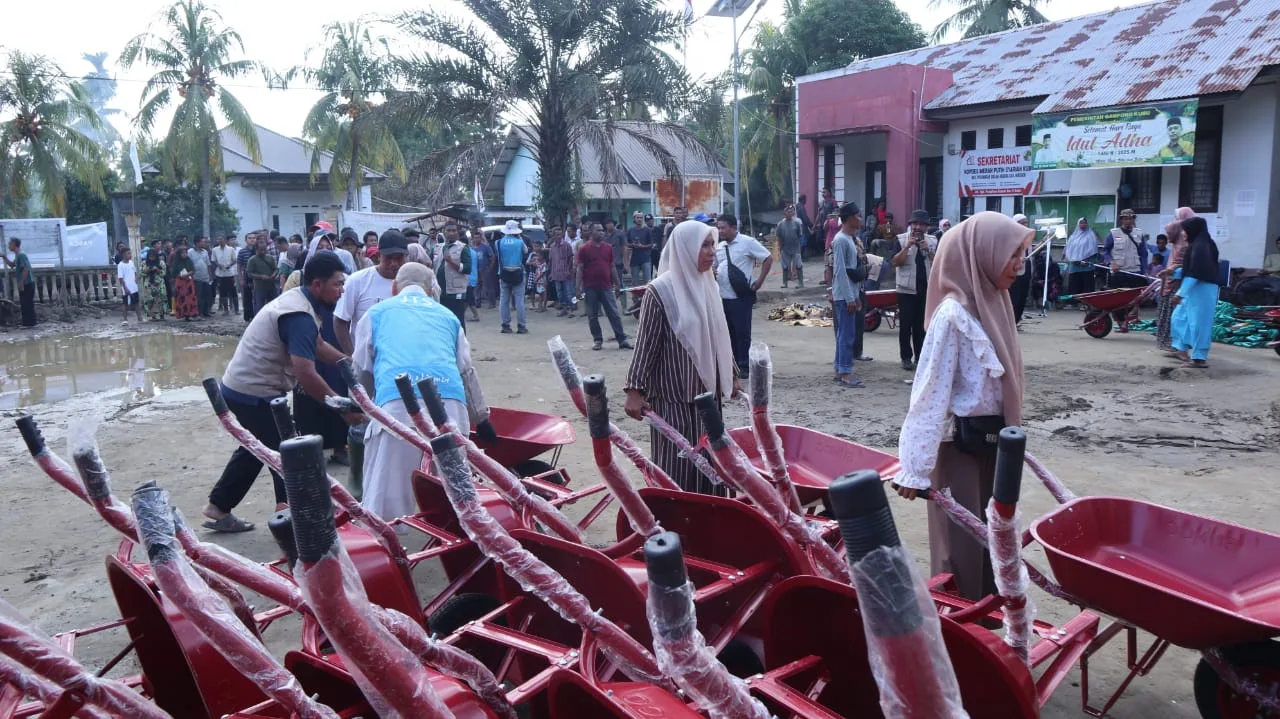 Bantuan perangkat kebersihan yang disalurkan untuk warga meliputi alat angkut tanah, cangkul, sarung tangan, serta alat pel, yang difokuskan untuk membantu warga membersihkan lumpur dan sisa material banjir di rumah-rumah mereka.