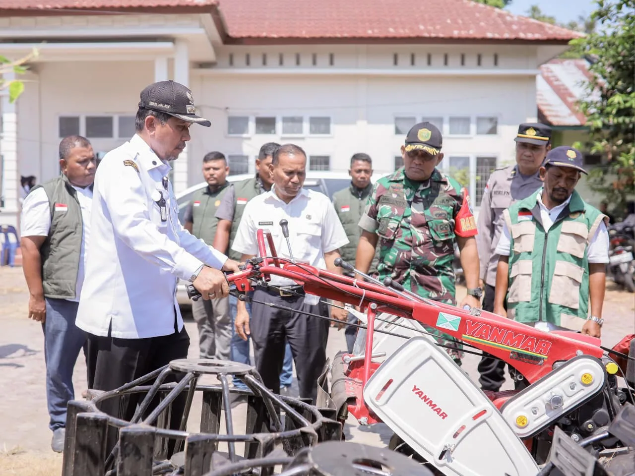 Kelima unit alat bajak tanah diserahkan oleh Bupati Pidia Jaya, Sibral Malasyi MA, SSos, ME bersama Kepala Dinas Pertanian dan Ketahanan Pangan (Distanpang), drh Muzakkir Muhammad, MM bersama unsurs Forkopimda.