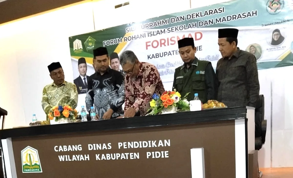 PORTALNUSA.com I PIDIE – Pengurus Jejak Langkah Pendidikan Indonesia (Jalanin) Kabupaten Pidie mendeklarasikan Forum Rohani Islam Sekolah dan Madrasah (Forismad), Senin petang, 2 Februari 2026 di Aula Cabang Dinas Pendidikan (Cabdindik) Aceh wilayah Pidie.