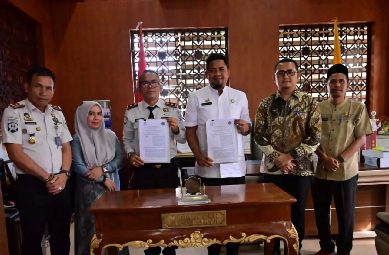 Kesepakatan tersebut ditandai dengan penandatanganan nota kesepahaman (MoU) yang berlangsung di Ruang Kerja Bupati Aceh Jaya, Jumat 13 Februari 2026.