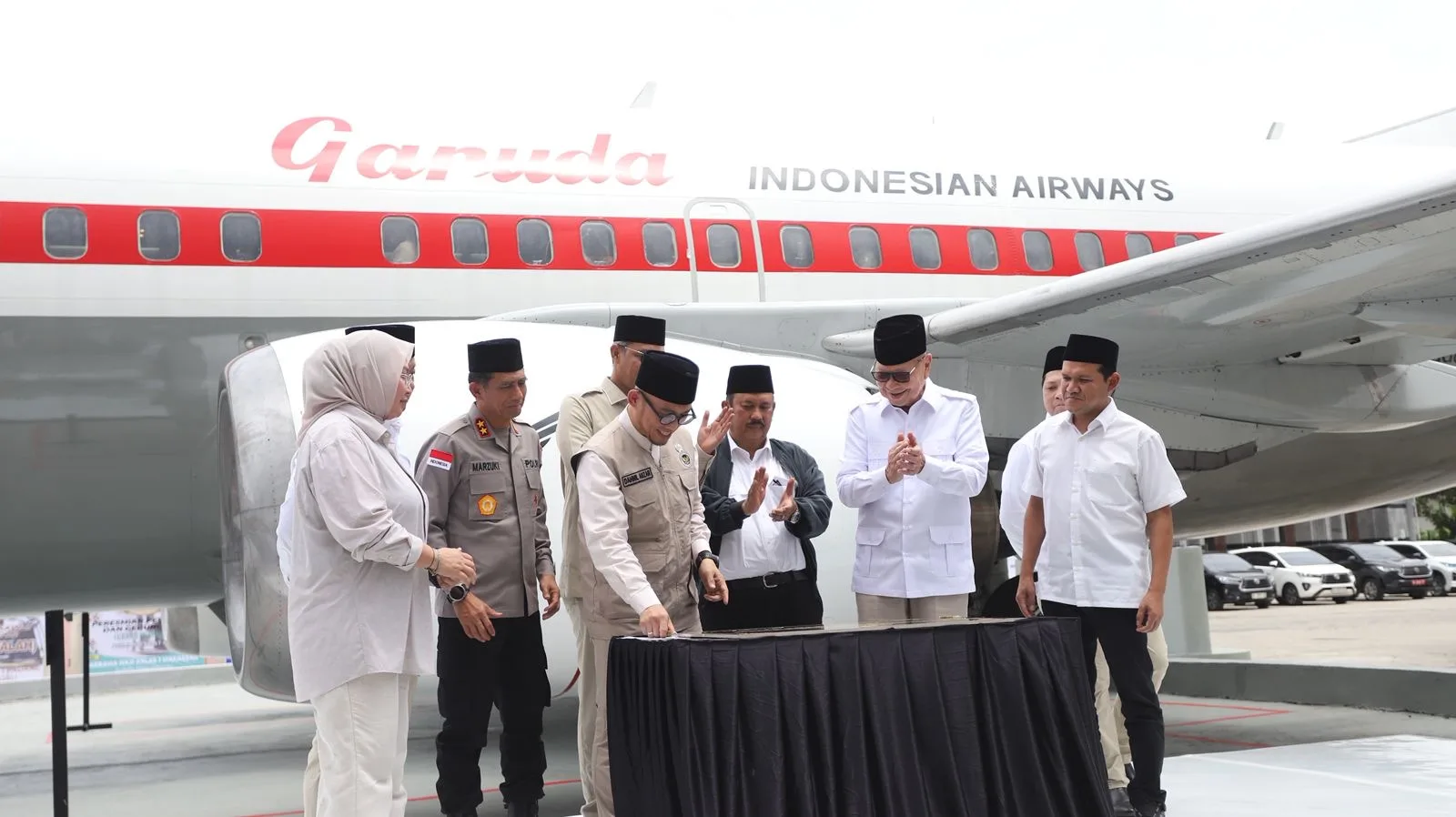 PORTALNUSA.com | BANDA ACEH – Kapolda Aceh, Irjen Pol. Drs. Marzuki Ali Basyah, M.M. menghadiri peresmian dan penyerahan mock-up pesawat Garuda Indonesia kepada Asrama Haji Provinsi Aceh, sekaligus peresmian Gedung A2 Pemondokan Jamaah (Grand Misfalah) Asrama Haji Kelas I Aceh.