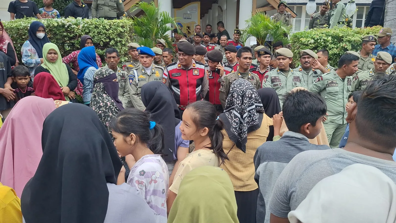 Puluhan personel kepolisian dan Satpol PP terlihat berjaga di pintu masuk pendopo guna mengamankan situasi dan mengatur arus massa.