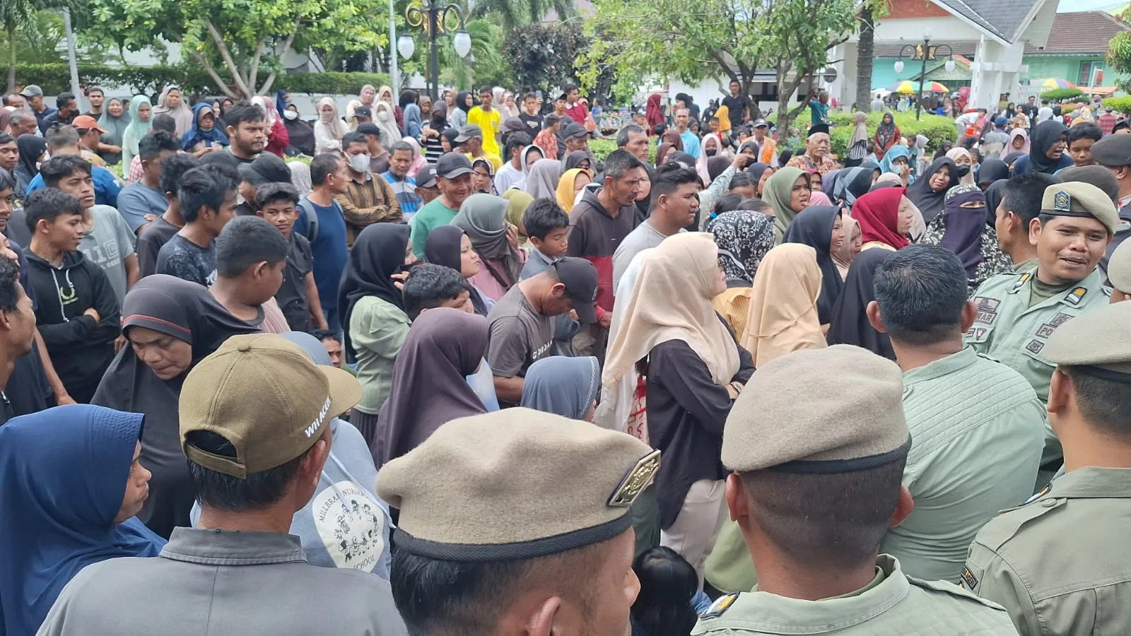 Suasana di sekitar pendopo tetap dipenuhi warga yang menunggu dengan harapan bantuan segera diberikan.
