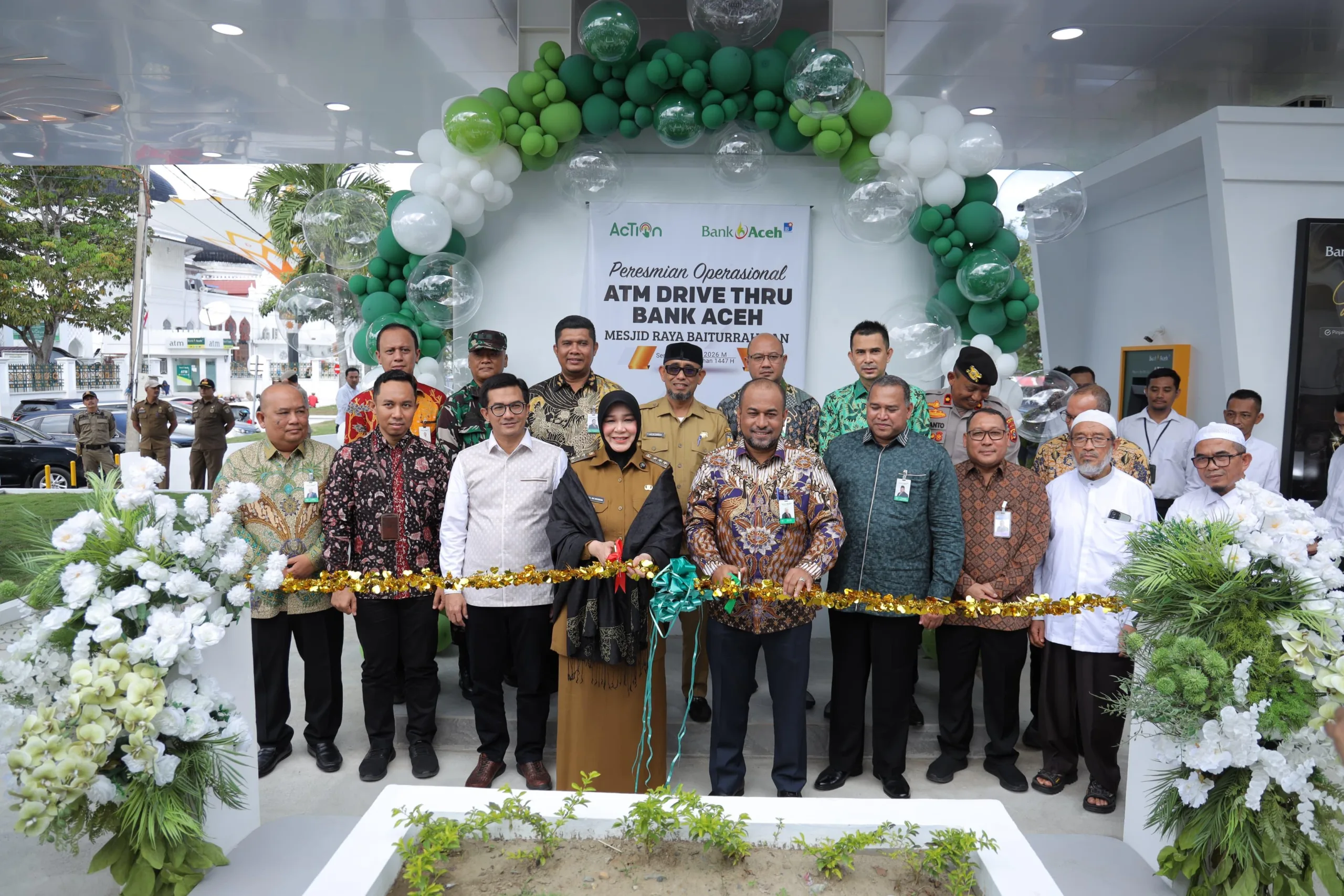Peresmian layanan ATM yang memungkinkan nasabah bertransaksi tanpa perlu turun dari kendaraan berlangsung Senin, 2 Maret 2026 dihadiri Wali Kota Banda Aceh, Illiza Sa’aduddin Djamal dan jajaran direksi Bank Aceh.