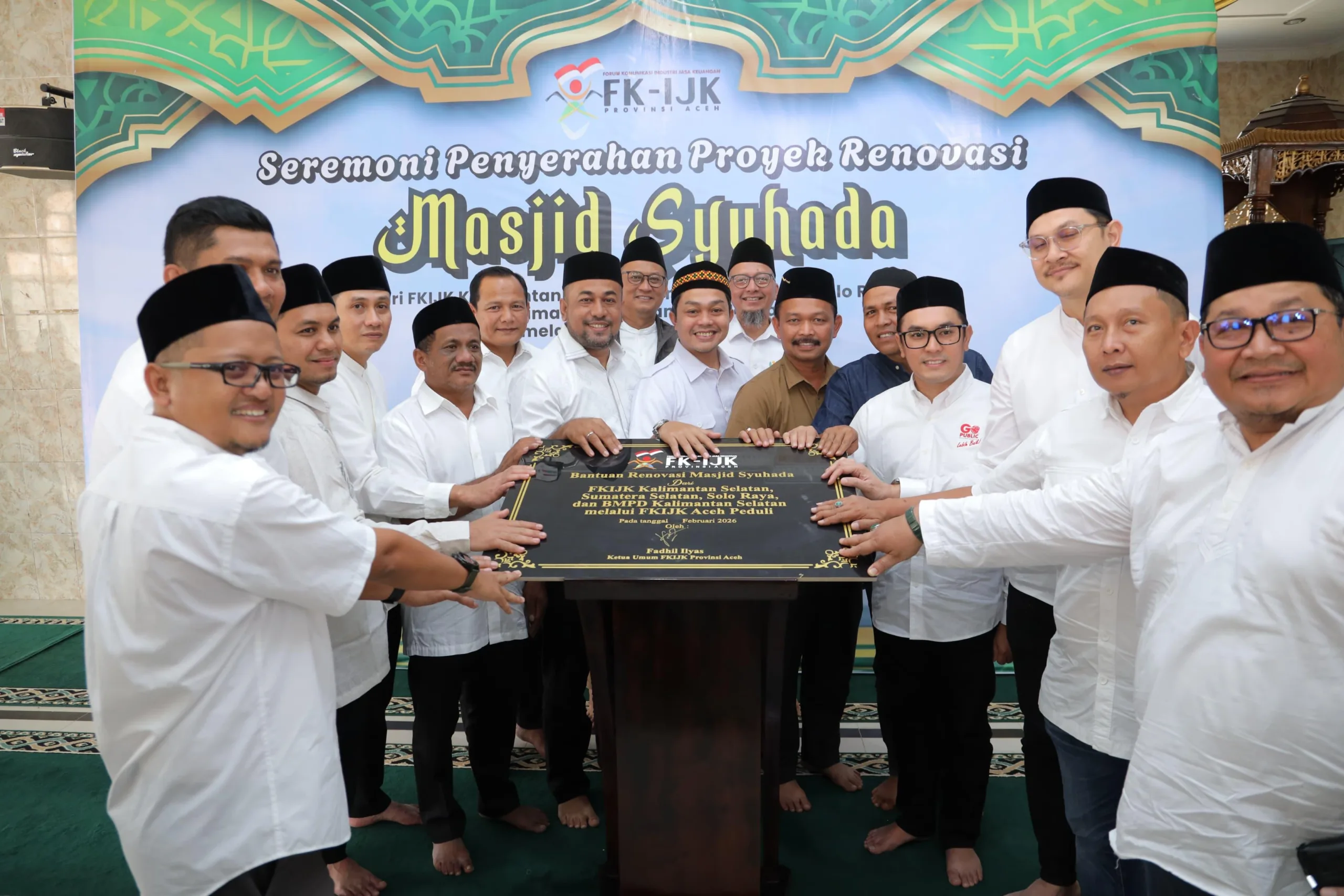 “Renovasi Masjid Syuhada ini adalah simbol kuat dari ukhuwah islamiyah dan solidaritas nasional. Rekan-rekan industri jasa keuangan dari Kalimantan Selatan, Sumatera Selatan, dan Solo Raya menunjukkan bahwa niat baik untuk membantu sesama tidak pernah terhalang oleh jarak dan batas geografis. Kami di FKIJK Aceh merasa terhormat dapat memfasilitasi amanah ini melalui program FKIJK Aceh Peduli,” ujar Fadhil Ilyas.