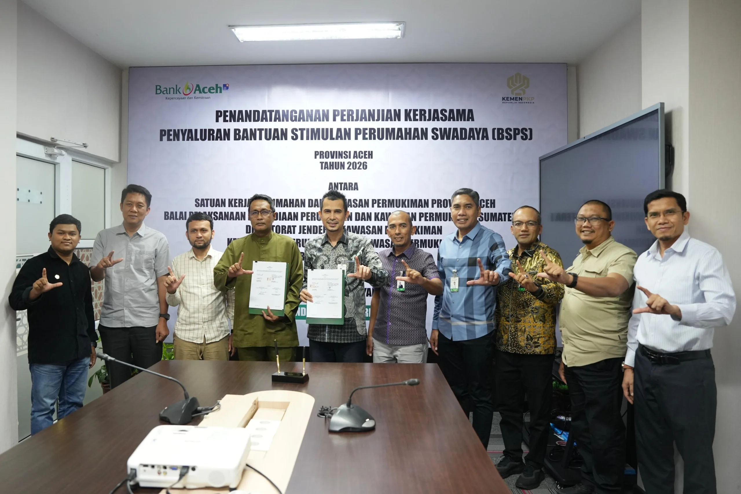 Penunjukan ini ditandai dengan Penandatanganan Perjanjian Kerja Sama tentang Penyaluran Bantuan Stimulan Perumahan Swadaya (BSPS) Provinsi Aceh Tahun 2026 Tanggal 12 Maret 2026 di Bank Aceh Kantor Pusat.