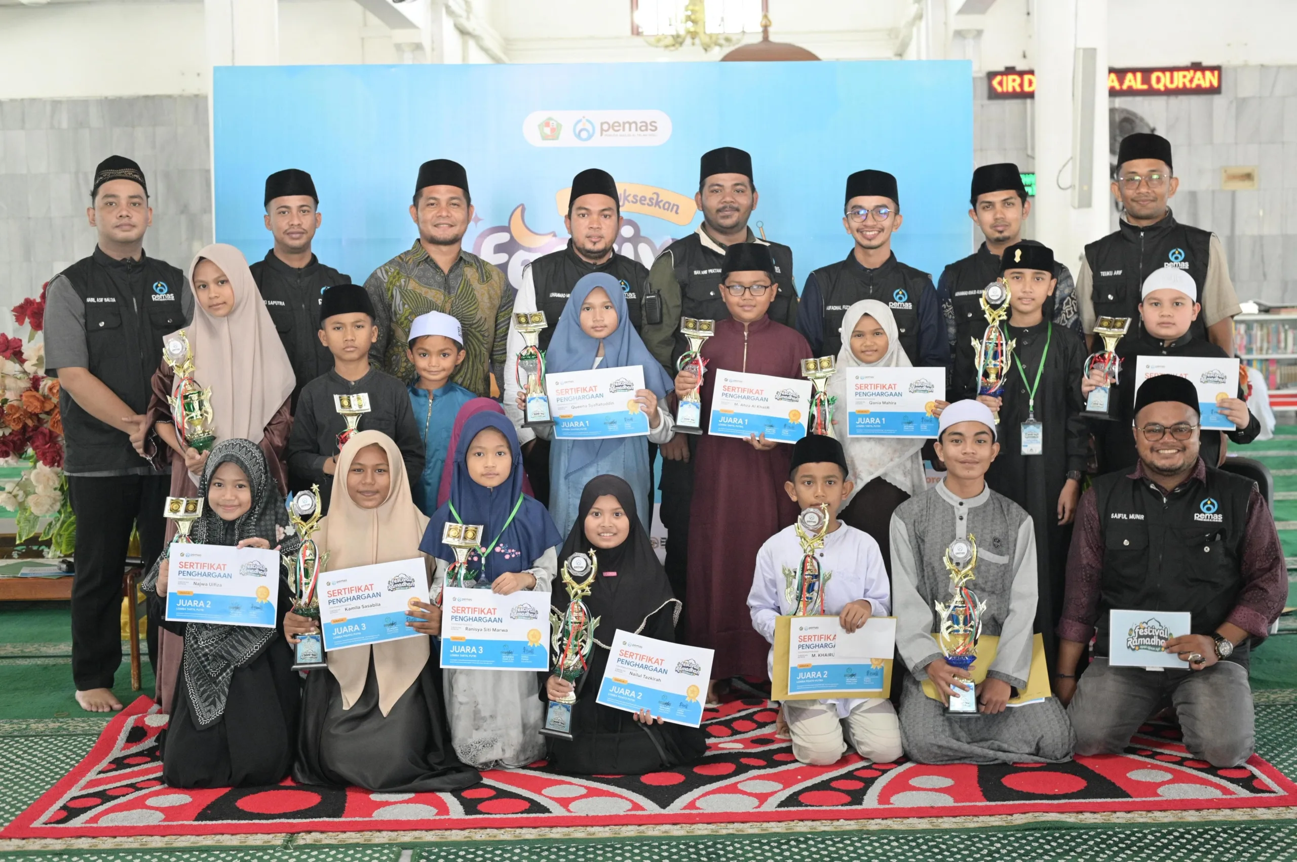 Ia menambahkan, Festival Ramadhan Ceria Pemas yang digelar untuk pertama kalinya ini juga menjadi ajang Musabaqah Tilawatil Qur’an (MTQ) mini yang bertujuan membentuk mentalitas serta memotivasi generasi Islam sejak dini untuk mencintai, mempelajari, dan mengamalkan Al-Qur’an dalam kehidupan sehari-hari.