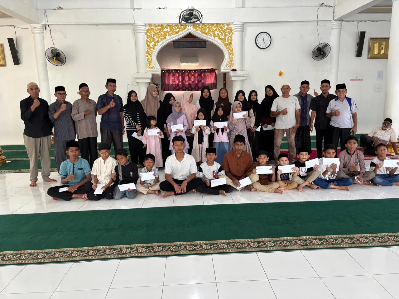 Penyaluran santunan untuk anak yatim ikut dilakukan oleh Keuchik Ceurih, Askari disaksikan aparatur gampong dan tokoh-tokoh masyarakat.