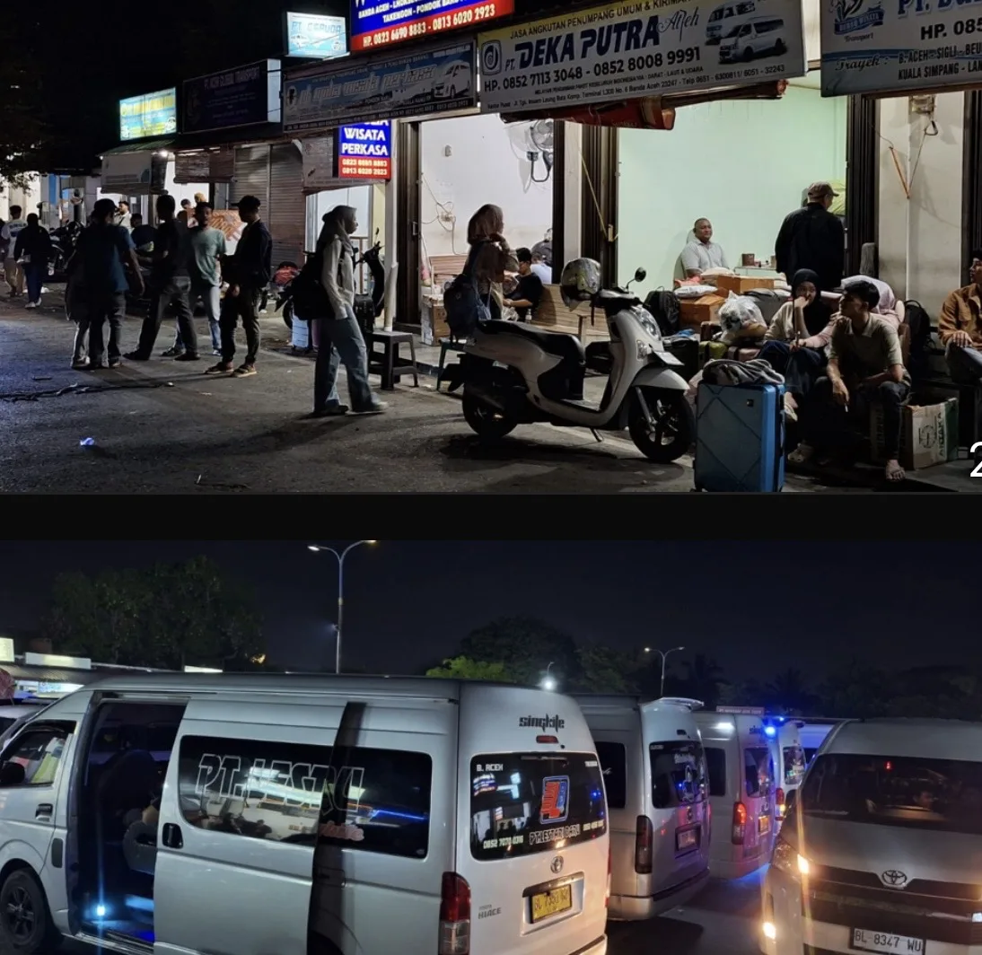 Pantauan Portalnusa.com di lokasi, seluruh armada minibus jenis Hiace dan L300 yang melayani rute ke wilayah timur, wilayah tengah Aceh, hingga Sumatera Utara telah dipenuhi penumpang.