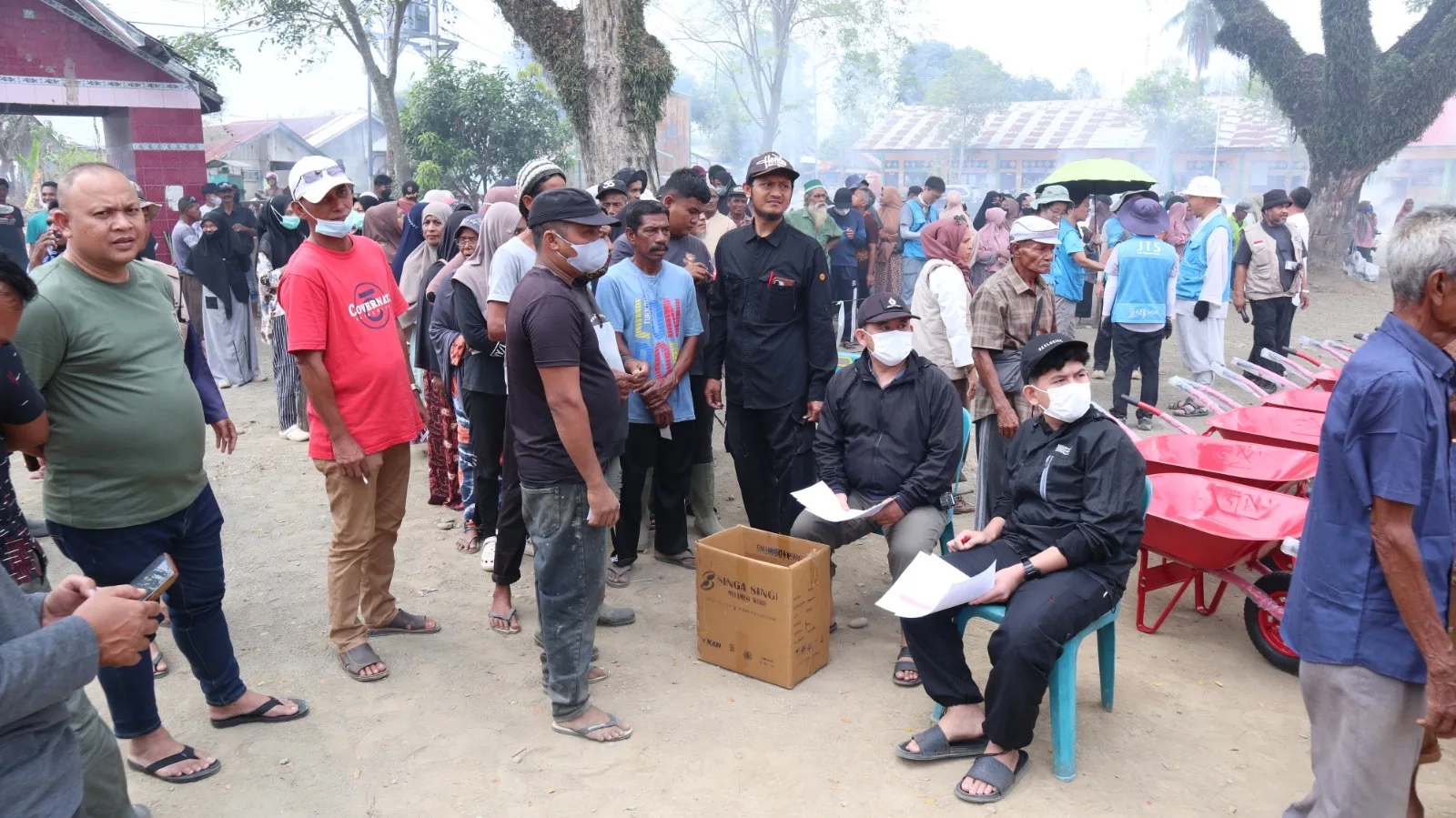 Kereta sorong dan perlengkapan kebersihan, menurutnya, menjadi sarana penting bagi warga untuk membersihkan lingkungan sekaligus memulai kembali aktivitas sehari-hari.
