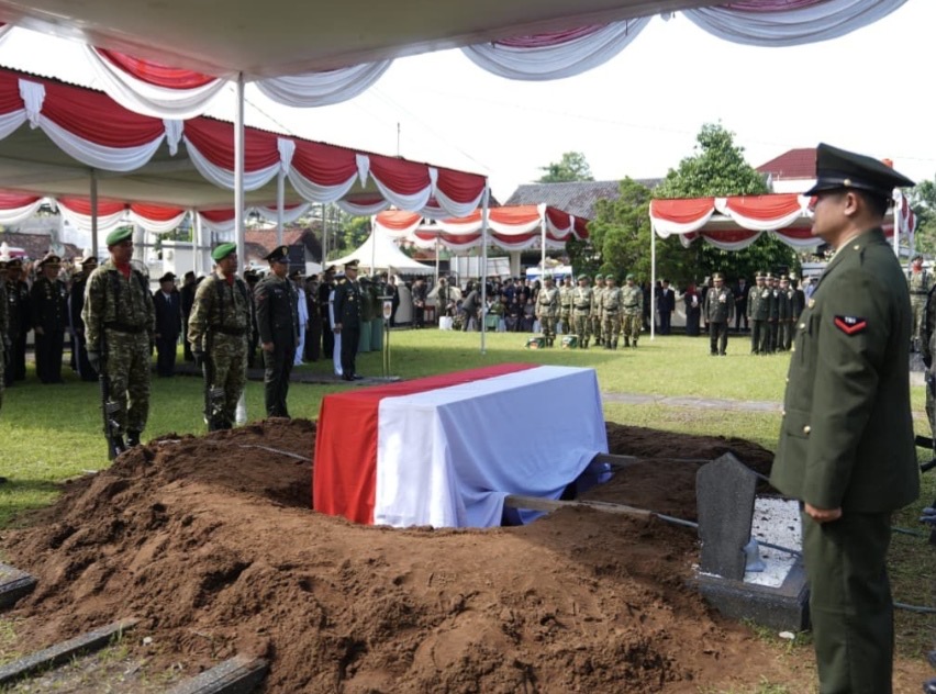 Upacara pemakaman dilaksanakan secara khidmat di Taman Makam Pahlawan Giripeni, Kabupaten Kulon Progo, Daerah Istimewa Yogyakarta, Minggu, 5 April 2026.