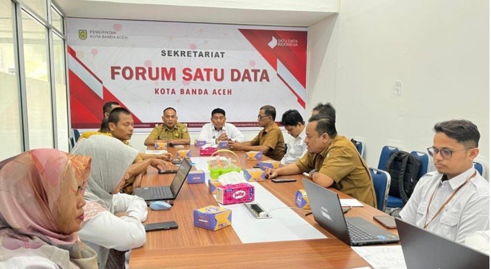 Pertemuan berlangsung di Ruang Satu Data Diskominfotik pada Selasa, 7 April 2026 diikuti dua OPD produsen data yaitu Dinas Pangan Pertanian Kelautan dan Perikanan (DPPKP) dan Dinas Kesehatan Kota Banda Aceh.