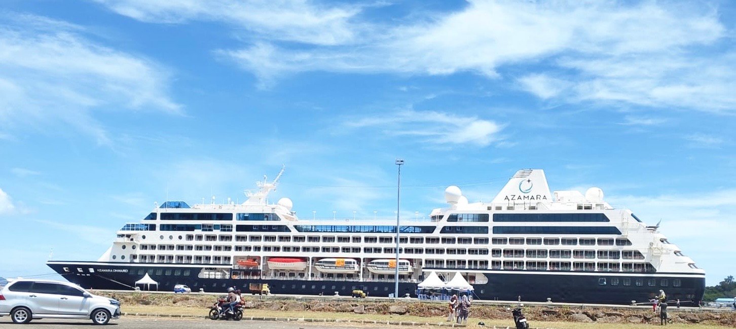 Ketua PWI Kota Sabang, Jalaluddin ZKY melporkan, kapal pesiar MS Azamara Onward sandar di Dermaga Container Terminal 3 milik Badan Pengusahaan Kawasan Sabang (BPKS), Gampong Kuta Timu, Kecamatan Sukakarya, Kota Sabang pada pukul 07.00 WIB.