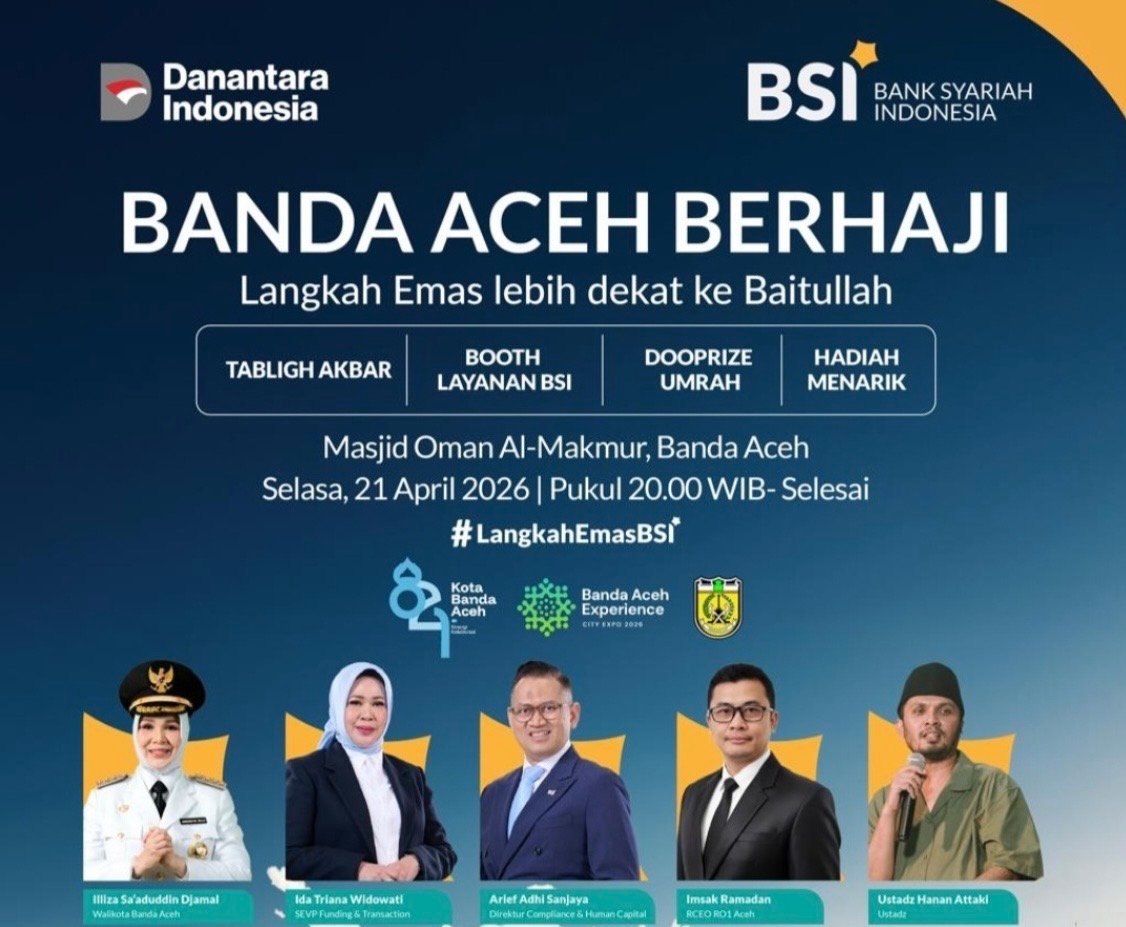 Pemko Banda Aceh bersama BSI mengajak seluruh masyarakat untuk turut hadir dan memeriahkan kajian ini sebagai momentum memperkuat keimanan sekaligus memulai langkah nyata dalam merencanakan ibadah haji.