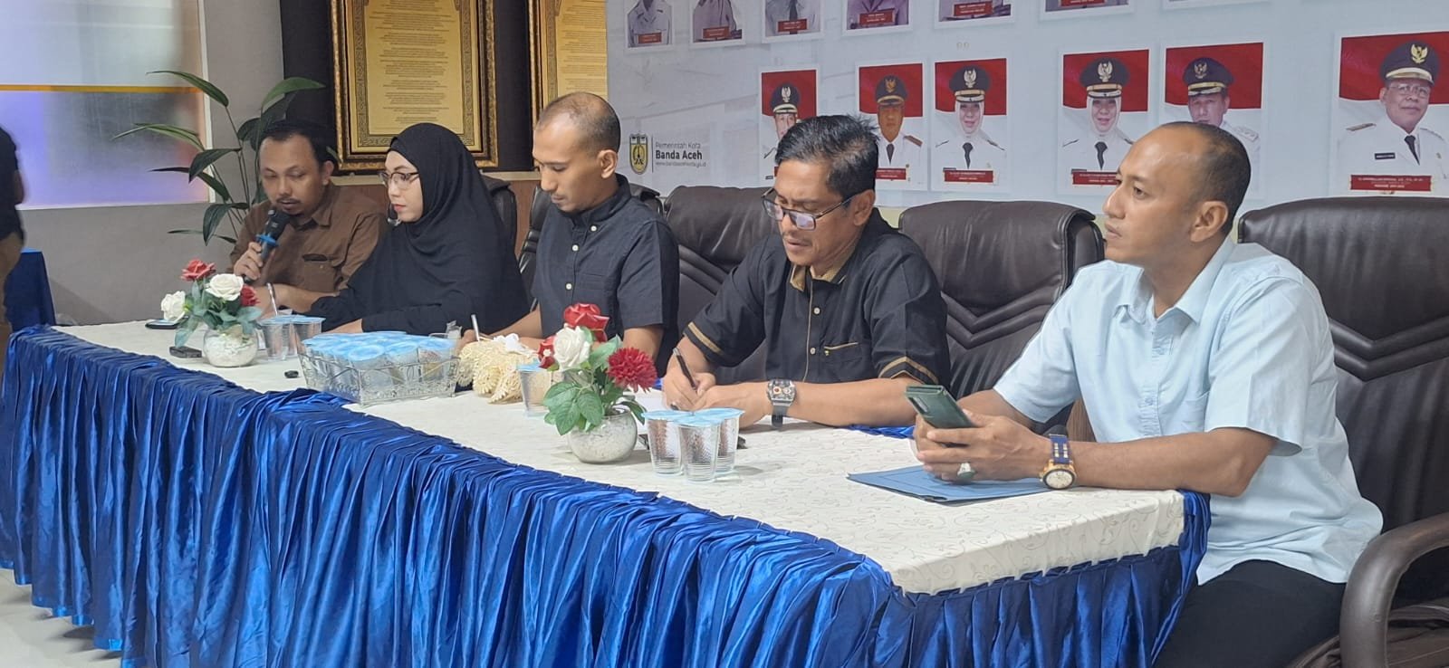 Kepala Dinas Pendidikan dan Kebudayaan Kota Banda Aceh, Sulaiman Bakri memberikan keterangan pers di Balai Kota Banda Aceh, Selasa malam, 28 April 2026 terkait TPA yang diduga terlibat penganiayaan balita yang kini tengah ditangani pihak kepolisian. (Foto: Abdul Hadi/ Portalnusa.com)
